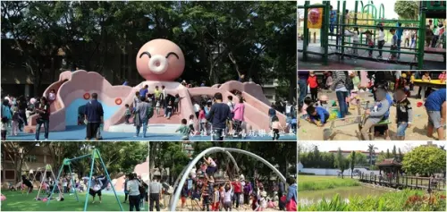 新北板橋特色公園『溪北生態休閒公園』Q版章魚造型磨石子共融性滑梯遊戲場/盪鞦韆/沙坑
