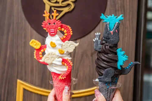 新北市淡水區酷礦美式冰淇淋淡水店|拿在手上就是威風!超炫砲噴水哥吉拉、紅色神龍霜淇淋