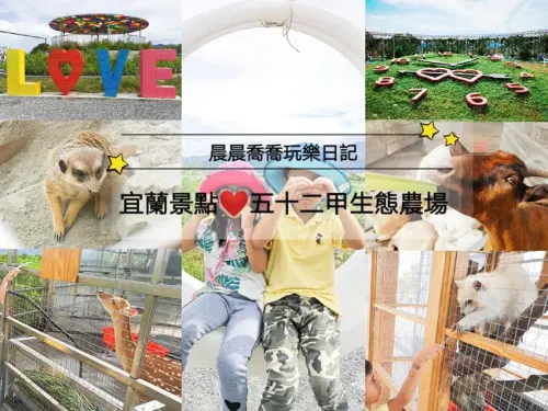 宜蘭景點【五十二甲生態農場】花鐘、吊床、月亮盪鞦韆好玩又好拍、室內/戶外動物區,有浣熊、狐獴、雪貂、梅花鹿、山羌好多動物喔!上千坪大的生態農場,早上10 點到晚上9點,白天夜晚都好玩!