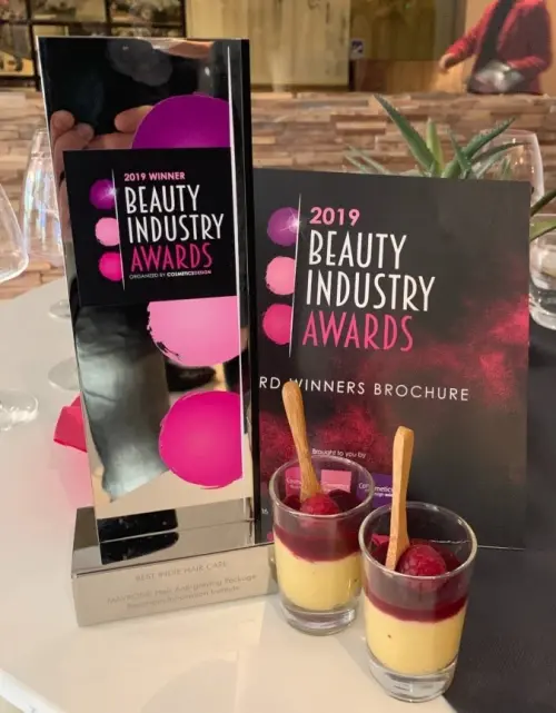 以農業科技跨界打入國際時尚!!台灣生技公司以獨特胜肽技術對抗白髮,獲得國際「The 2019 Beauty Industry Awards」 2019美容化妝品產業大獎首獎。