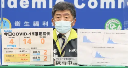 超過39萬人預約打高端!指揮中心表示:AZ+高端混打有待實驗,COVID-19本土確診4例、0死亡、境外14例。