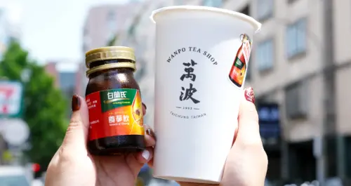 喝飲料超級補!萬波、白蘭氏養蔘飲聯名「養蔘仙草冬瓜、養蔘波霸桂圓」限量上市,倒入整瓶「白蘭氏養蔘飲」讓婆媽愛上喝飲料。