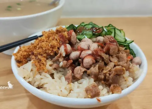 台中市場美食|位於黃昏市場中的美味米糕、油飯,搭配肉羹湯超對味|十甲新光市場|麻豆李助碗粿