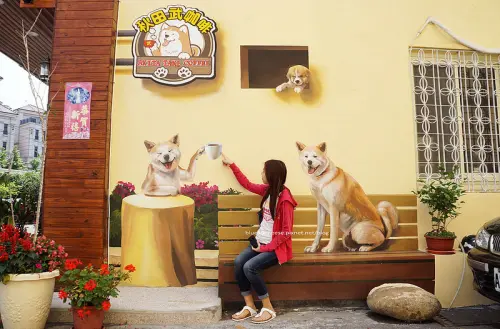 【台中沙鹿】秋田武咖啡 - 秋田武專有彩繪牆.沙鹿再一漂亮彩繪牆.秋田界的金城武.聽得懂日文的店狗小武TAKE.可拍照不要觸碰到身體喔