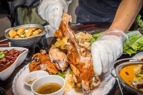 南投縣竹山鎮饗富滬川台菜窯烤雞|滿滿雞汁大奔流!皮脆肉嫩極品烤全雞