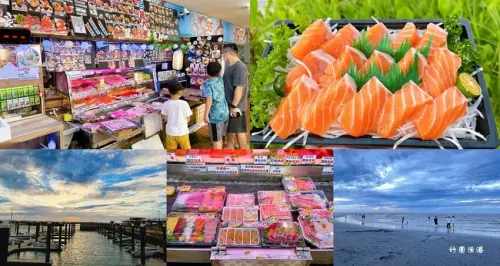 桃園景點 ❙ 竹圍漁港56號許記生魚片 ❙ 鮭魚生魚片、巨無霸手卷 竹圍海水浴場玩沙戲水!