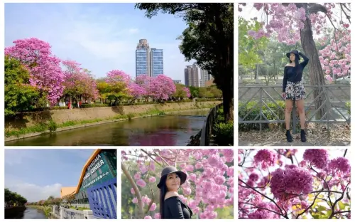 |嘉義大林景點 大林明華濕地生態園區 粉紅風鈴木 萬綠叢中一點紅 還有落羽松木棉花 浪漫來臨 季節限定|