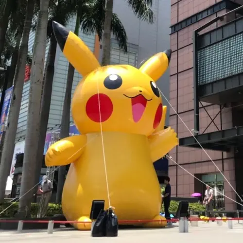 皮卡丘迷一定要拍!「寶可夢園遊會」插旗台中新光三越中港店,七米高「皮卡丘氣球」先打卡再說。