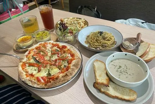 台北市中山區行天宮素食推薦親食砌蔬食café,義大利麵、披薩西式餐點新鮮濃郁擺盤漂亮又好吃