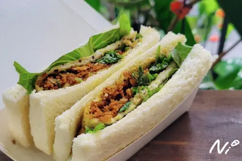 [嘉義東區]懶的想早餐。「新上市」滿滿香菜和香菜酥煎蛋烤三明治! #東市場早餐