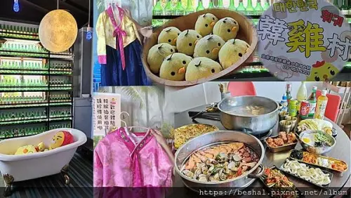 推薦宜蘭羅東美食-韓國村主題餐廳韓雞村 滿滿蒸海鮮│超好喝雞湯火鍋│韓式炸雞│吻仔魚海鮮煎餅│還可以免費穿韓服拍照庭院還有盪鞦韆帳篷可拍網美照