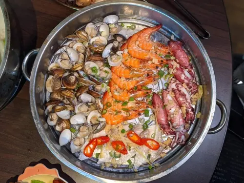 【宜蘭羅東美食】朋月栻韓雞村|海鮮鍋物專門店,現流蒸籠海鮮,吃到食物的鮮甜味,韓式炸雞必點起來,還有呆萌可爾鴨|Ruby說美食享受旅行(@tour_ruby530)