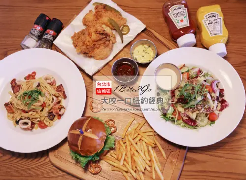 北市。信義|1Bite2Go Cafe & Deli 美式餐廳(信義店)-紐約風格美式餐廳;2018年夏季新菜單,清爽美式經典滋味-推薦大口咬蝴蝶海鹽漢堡!