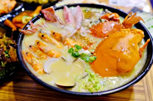 巨無霸臉盆大澎派海鮮粥,爆滿人潮從店內擠到店外來!