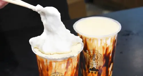 最浮誇黑糖珍奶!老虎堂用「春光雪中紅」挑戰最夢幻珍奶頭銜,「黑糖波霸厚雪糕、超厚芝士奶蓋」一次大滿足。