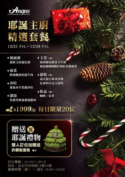 [廣宣]2018/12/21~28安格斯餐酒館Angus Steakhouse & Bistro 推出華麗耶誕套餐限量登場!