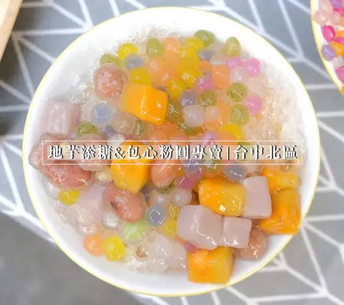 ▶【台中-北區】地芋添糖&包心粉圓專賣 ☞以天然食材呈現晶瑩透亮的自然繽紛鮮彩珍珠、創意包心粉圓及窯烤芋薯圓!(近益民商圈)