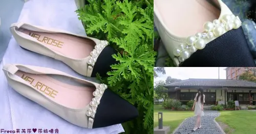 生活穿搭【MELROSE美樂斯】大小鑽珠貴氣質感「優雅珍珠鏈條撞色牛皮尖頭娃娃平底鞋」優雅氣質女孩的約會拍美照 - Fresa芙芮莎♥莎旅憶食