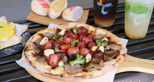 比薩控無極限!堤諾義式比薩「烤肉比薩」烤肉片+烤香腸+整顆生大蒜超絕配,周年慶再推「爆餡芋泥餅免費送」快來拚人品。