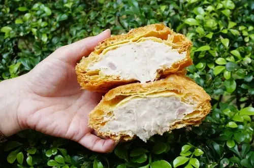 芋頭控的大甲芋頭泡芙!貪吃狗全新推出「大甲芋頭卡滋棒棒」爆漿登場,吃得到顆粒的「大甲芋頭」卡士達內餡搶攻芋頭控的芋頭甜點排行榜。