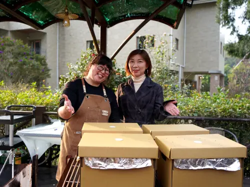 南投縣魚池鄉日月潭御朝度假村Crystal- WeResort慶新生,推出吮指美食焗烤紙箱紅茶雞,賞茶花啖美食人生一樂。