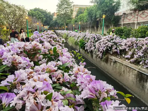 桃園蒜香藤|石門大圳過嶺支渠四季花彩步道/粉紫花海限時景點