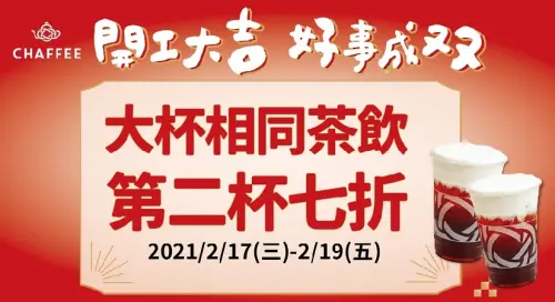 開工不厭世!CHAFFEE大杯茶飲第2杯7折,連3天優惠小確幸,就用最強茶拿鐵來收心。