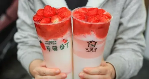 一杯18顆草莓回來了!大苑子「莓好相遇」150元、18顆草莓塞好塞滿,春節新品「春熙柳丁咖啡」大吉大利喝起來。