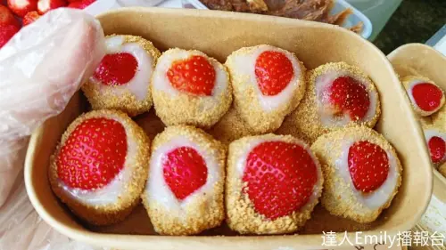 台中向上市場美食|爆紅草莓麻糬,排隊也要吃