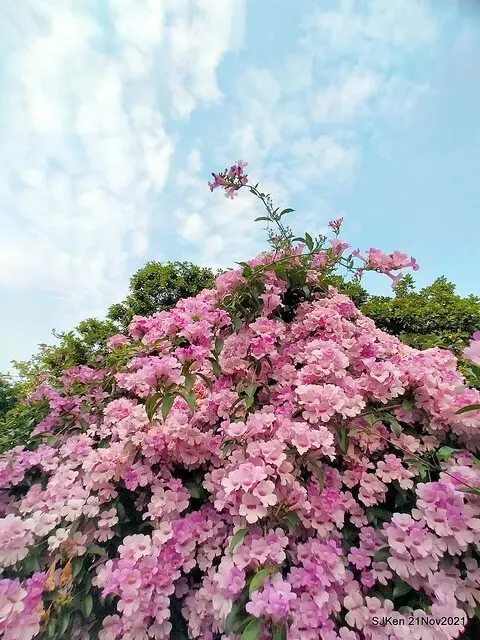 楓樹河濱公園「蒜香藤」花海 --- 數大便是美 !(2021.11.21 滿開)