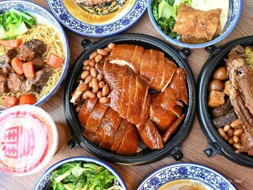 台中便當推薦,必點港式油雞、牛肉撈麵超好吃,免費藥膳雞湯喝到飽,獨家紹興醉蝦、排骨飯只有河南店有