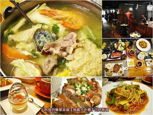 ﹝桃園市中壢食記﹞古月新城 古色古香與時尚共融,高人氣、不限時的平價複合式餐廳;風味出乎意料順口的皮蛋香菜鍋,讓布丁看起來更美味的雞蛋造型玻璃器皿 /Google 評論一千四百則,平均4.2顆星/中壢