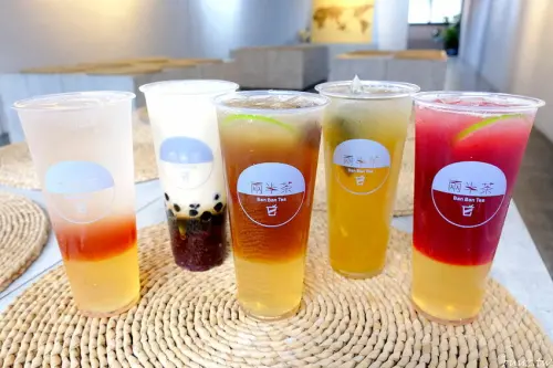 梅凍漸層飲鹹甜好風味!兩半茶質感茶飲,灰藍色內用空間絕美好拍!