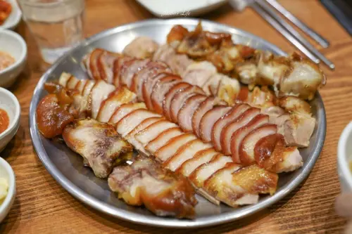【韓國釜山|美食】HongSo豬腳(홍소족발)。札嘎其市場美食推薦,富平洞豬腳一條街,滷的入味Q彈不油膩,夾