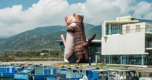 14米高擁抱貓咪免費拍!日本超萌「極度日常展」台灣就能拍,貓咪木雕扭蛋、貓咪燒超萌。