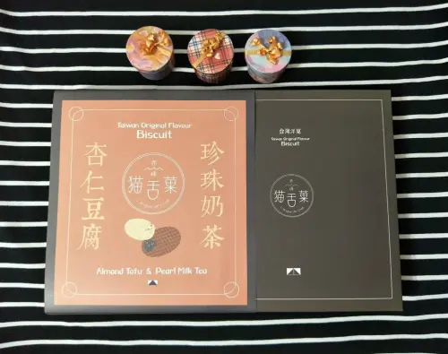 台灣『最佳伴手禮』【"赤峰猫舌菓"猫舌菓雙口味--> 珍珠奶茶&杏仁豆腐禮盒】將道地台灣口味帶進法式西餅「Langue de chat」內的絕妙Q彈好滋味~~