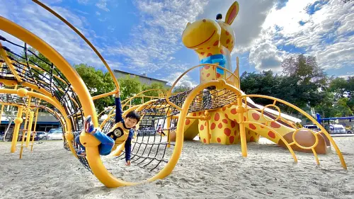 長頸鹿公園|花蓮免費親子景點 六米高長頸鹿溜滑梯、攀爬網、單槓 好玩好放電