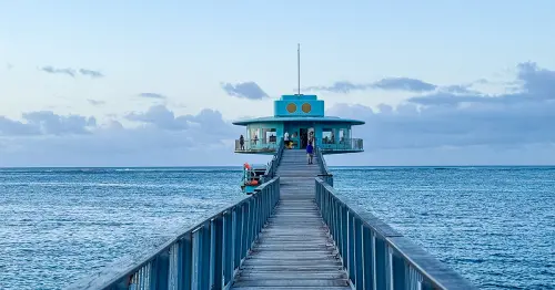 關島景點推薦「魚眼海洋公園」看夕陽超美!超長千呎海上步道,根本神隱少女場景。