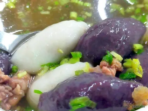 (新竹美食)中央市場44攤「阿金黑糯米餃」--- 獨門黑白雙色糯米餃,湯圓外皮水餃內餡,入口Q彈軟嫩好滋味!