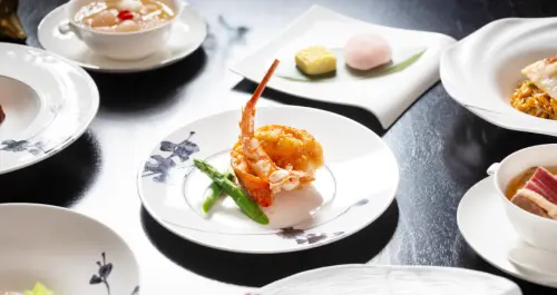 探索米其林一星「雅閣」港式點心新菜單!香港金獎女主廚葉銘惠巧手打造菊花龍蝦春卷、安蝦鹹水角。