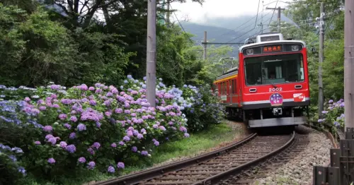 箱根繡球花電車夜景版比宮崎駿動畫更美,限定17天坐著火車穿越7000株花海仙境。