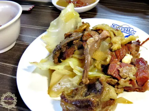 〈台北美食〉民生社區,江南林園風格的集客人間茶館(富錦店),紅白相間雪花牛的銅盤烤肉和大力推的Q彈滷味米血糕