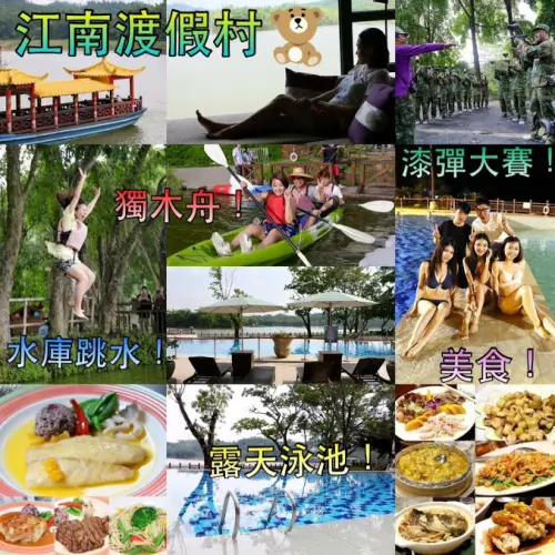 台南。柳營~台南旅遊。尖山埤台糖江南渡假村─泊三食體驗活動(住宿、美食、露天泳池、健身房、星光酒吧、水庫跳水、獨木舟、遊湖、森林浴)