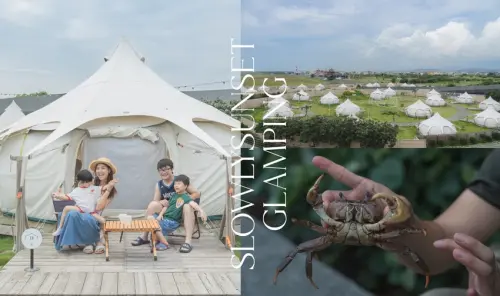 高美濕地露營場來了!全新露營區「蟬說:夕陽漫漫」預計10月登場,網美敲碗「豪華4人帳篷、濕地主題餐廳」看完高美濕地夕陽住一晚。