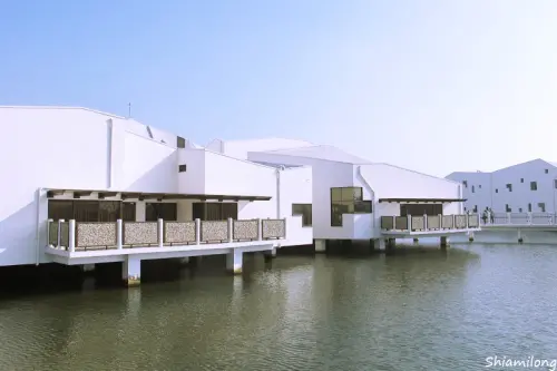 ╠台南。景點╣新亮點~Instagram打卡熱門景點!台江國家公園遊客中心(台江學園)全台唯一的白色建築幾何線條水上高腳屋,彷彿置身國外渡假氛圍!