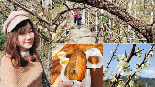台中新社百年梅花樹/咖啡下午茶手作麵包【鮭魚葡萄木屋烘焙】超甜現摘葡萄。多口味雜糧麵包/自製牛軋糖/在地農特產美食/賞新社梅花隧道停車場