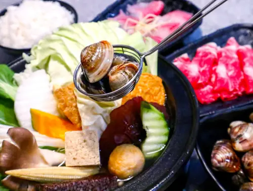 初鍋。一口現流鮮活蛤蠣,一口慢火燉煮12600秒的鮮蔬雞湯,深根在地健康美味,板橋石頭火鍋