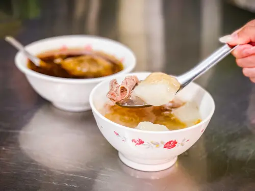 新北市三重區北港龍門鴨肉羹|全力以赴加辣粉!無時無刻都在排隊的老牌鴨肉焿