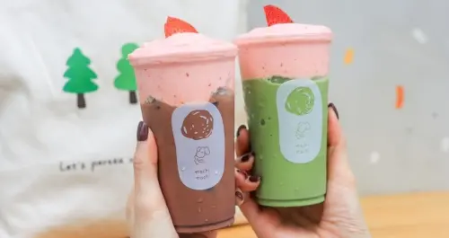 草莓加抹茶很可以!麥吉新品「草莓奶蓋抹茶冰沙」紅配綠超可愛,首次推出「草莓醬起司奶蓋」挑戰草莓手搖杯話題。