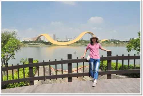 【台南▍親子景點】南科迎曦湖♥好一條巨大的黃金蟒!!在水面上穿梭自如~
